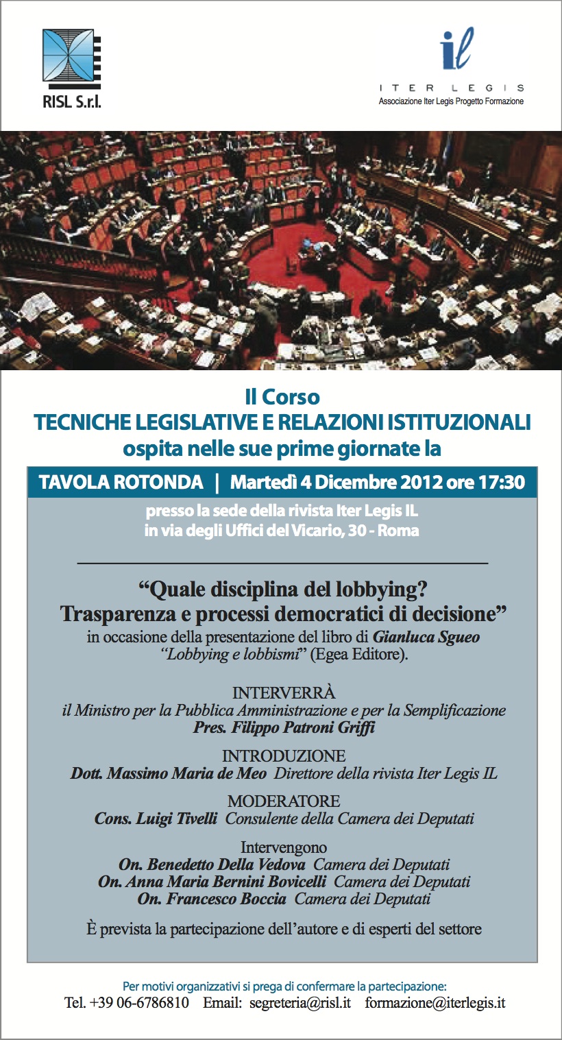 4 Dicembre 2012 - "Quale disciplina del Lobbying? Trasparenza e processi democratici di decisione"